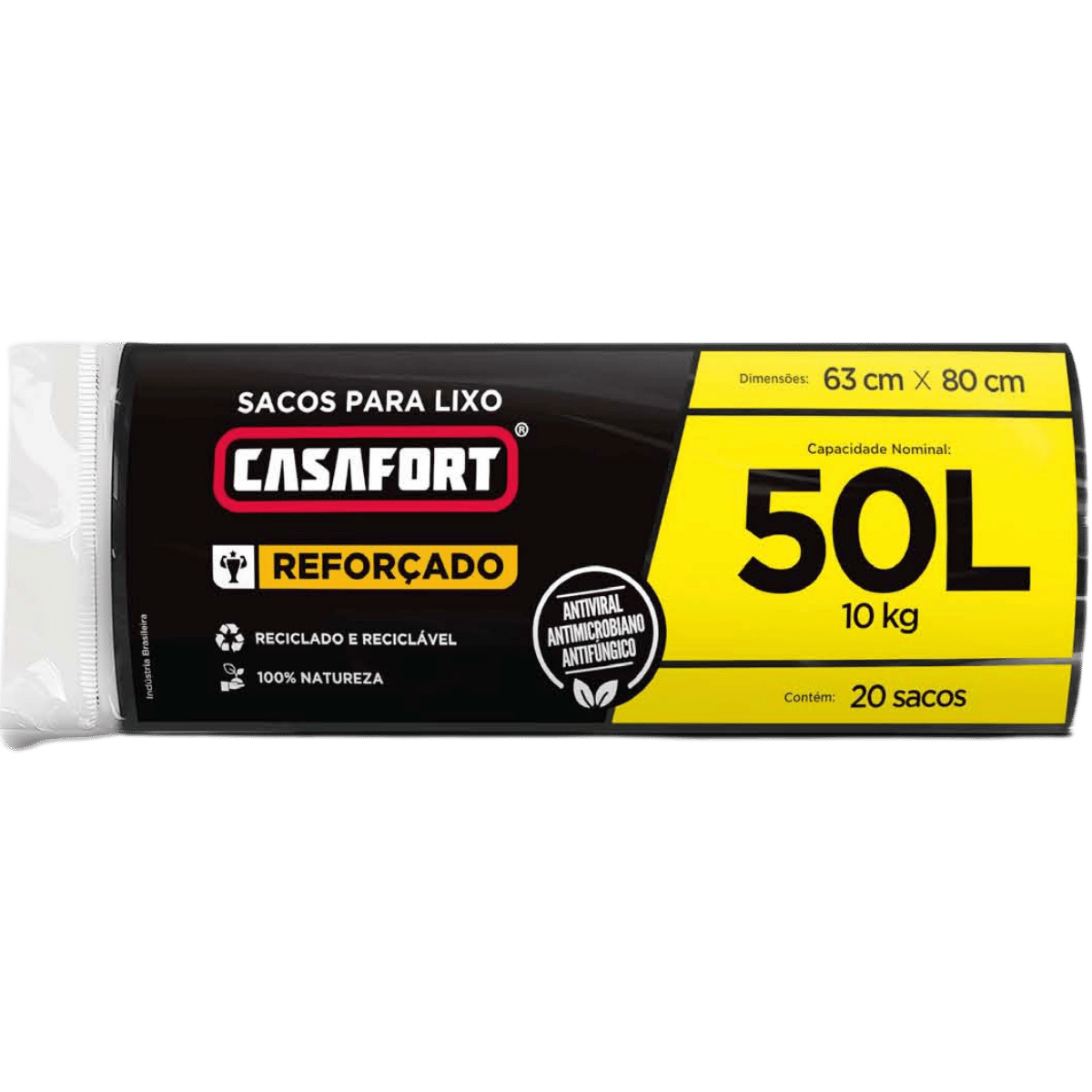 O saco de lixo de 50 litros Casafort é uma ótima opção resistente e confiável para diversas aplicações.